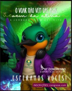 O 10º Congresso Espírita de Sergipe (Congrese), realizado pela Federação Espírita do Estado de Sergipe (Fees), já está batendo à porta com o tema: “O voar não vem das asas, vem da alma. A jornada de um espírito”. Quem faz o convite para participar deste importante evento é o nosso querido mascote Fred, um simples beija-flor, mas que tem um sonho grandioso. Dias 26, 27 e 28 de setembro de 2025, no Teatro Tobias Barreto (Aracaju/SE). Garanta sua inscrição. Esperamos você. Venha voar com a gente! Mais aqui: https://congrese.com/ https://www.instagram.com/federacaoespiritadesergipe/