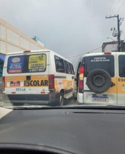 Atenção SMTT! Vans escolares fecham trânsito diariamente em frente ao Instituto Dom Fernando Gomes no Bairro Siqueira Campos prejudicando dezenas de motoristas e até mesmo pais de alunos.
