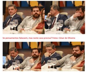 Quando as fotos não precisam de um texto para explicá-las. Uma sequência do mago da fotografia César de Oliveira ontem, 3o, na reunião do Fórum Empresarial de Sergipe, com a presença do governador, Fábio Mitidieri, do ministro do Desenvolvimento e Assistência Social, Wellington Dias. Lado a lado os desafetos petistas sergipanos senador Rogério e o ex-vereador Danilo Segundo, casado com Lurian, filha de Lula. Os 3 não se “bicam” dentro do PT. E o pres. Lula é solidário a Lurian.