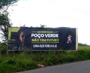 Outro exemplo vem da região Centro Sul sergipana: Poço Verde. Lá, o prefeito reeleito, Iggor Oliveira, não cumpre várias promessas, uma delas o pagamento do piso dos professores. O Sintese teve que colocar na entrada da cidade um outdoor “Sem educação, Poço Verde não tem futuro.” Ver print ao lado.