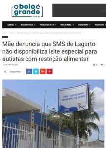 Humilhação Continua a matéria: “É um sentimento de humilhação, pois eu não posso trabalhar porque tenho que cuidar do meu filho com autismo, e não consigo o leite na SMS. Para piorar, o meu filho precisa de dez latas do leite por mês, mas só oferecem quatro”, relatou. A mãe também afirmou que tenta aposentar o filho, contudo, não consegue. Por isso, precisa do auxílio do município na entrega do leite. Toda matéria com o áudio do relato da mãe aqui: https://www.oboloegrande.com.br/mae-denuncia-que-sms-de-lagarto-nao-disponibiliza-leite-especial-para-autistas-com-restricao-alimentar/