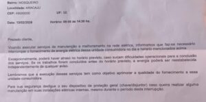 Na área dos bares da praia de Aruana, dia 13, das 9h às 14h30. Quando o empresário que vive com a corda no pescoço pode ganhar um dinheiro a Energisa faz uma destas. A quem recorrer? Quem poderá ajudar os donos dos bares?