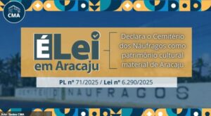 Lei declara o Cemitério dos Náufragos como patrimônio cultural material de Aracaju. Parabéns professor Iran Barbosa, pela iniciativa Alguns projetos de lei aprovados na Câmara Municipal de Aracaju têm o objetivo de reconhecer a existência de bens culturais de natureza material e imaterial na cidade. Um exemplo é o Projeto de Lei 71/2025, de autoria do vereador Iran Barbosa (PSOL), que estabelece o Cemitério dos Náufragos, já tombado pelo patrimônio histórico estadual, como patrimônio cultural, de natureza material, da cidade de Aracaju. O projeto foi sancionado pelo Poder Executivo e tornou-se a Lei 6290/2025, passando a vigorar na capital sergipana no final de dezembro de 2025.