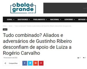 Hipótese levantada E continua a matéria: Mas a estranheza não está na desunião e briga interna do agrupamento político dos Ribeiro, já acompanhadas desde sempre por quem mora em Lagarto e quem conhece a política sergipana, e sim numa suposta jogada de Gustinho para ter um pé na campanha de Mitidieri e outro na de Rogério. A partir do posicionamento oportunista de Luiza, os próprios aliados, além dos adversários, começaram a levantar a hipótese de um “combinado”. Leia toda matéria aqui.