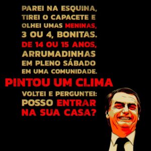PINTOU UM CRIME! Quanto mais Bolsonaro tenta justificar as suas pervertidas declarações sobre meninas venezuelanas mais se complica. Hoje descobriram outros vídeos em que o presidente faz novas insinuações sobre as adolescentes. Bolsonaro não tem o mínimo de decência.