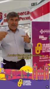 O secretário de Cultura, Samarone, convida você para a Bienal Internacional do Livro de Itabaiana! De 23 a 26 de outubro, o Shopping Peixoto será palco de cultura, literatura e grandes encontros com autores, leitores e amantes dos livros. A VII Bienal está tendo todo apoio da Prefeitura de Itabaiana.