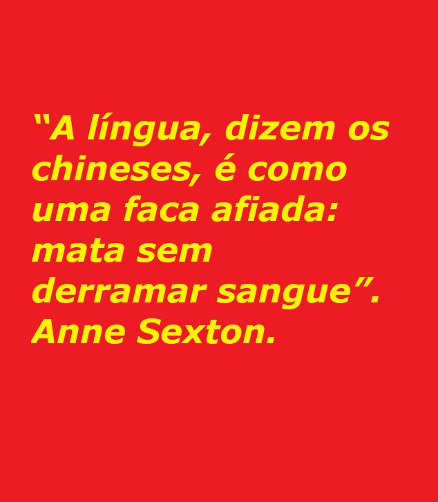 “A língua, dizem os chineses, é como uma faca afiada: mata sem derramar sangue”. Anne Sexton.
