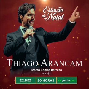O cantor Thiago Arancam se apresenta, no dia 22 de dezembro, em Aracaju, no Teatro Tobias Barreto, às 20 horas, com o espetáculo “Estação de Natal”. Uma celebração ao clima natalino, onde a magia e o encanto no Natal são embalados por grandes clássicos na voz do tenor brasileiro, considerado um dos maiores intérpretes do país.
