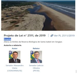 Se a intenção do senador Alessandro Vieira era apenas assegurar perante a lei os limites atuais, o que aconteceu foi que com a apresentação do projeto ele levantou a bola para quem deseja minimizar a proteção integral da área. Ontem, 17, o projeto estava na pauta da aprovada na CCJ uma emenda do senador Laércio Oliveira – também relator – que “Recategoriza a Reserva Biológica de Santa Isabel como Parque Nacional de Santa Isabel”. A justificativa de Laércio é transformar o local em área de visitação pública.