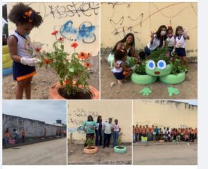 Socorro: conscientização ambiental Com foco na conscientização ambiental, a Secretaria Municipal de Meio Ambiente (Semma), em parceria com a Fundação Brasil Ecoar, realizou o plantio de ervas medicinais e plantas decorativas no entorno da Creche Municipal Irmã Dulce, no Marcos Freire I. Os alunos puderam participar da atividade e receberam orientações quanto aos cuidados com as plantas e a importância de preservar o meio ambiente. Na experiência, também foi possível transformar pneus velhos em decoração. A ação contou com a colaboração da Secretaria Municipal de Infraestrutura e Serviços Urbanos e a cooperação da equipe diretiva da Creche Municipal.
