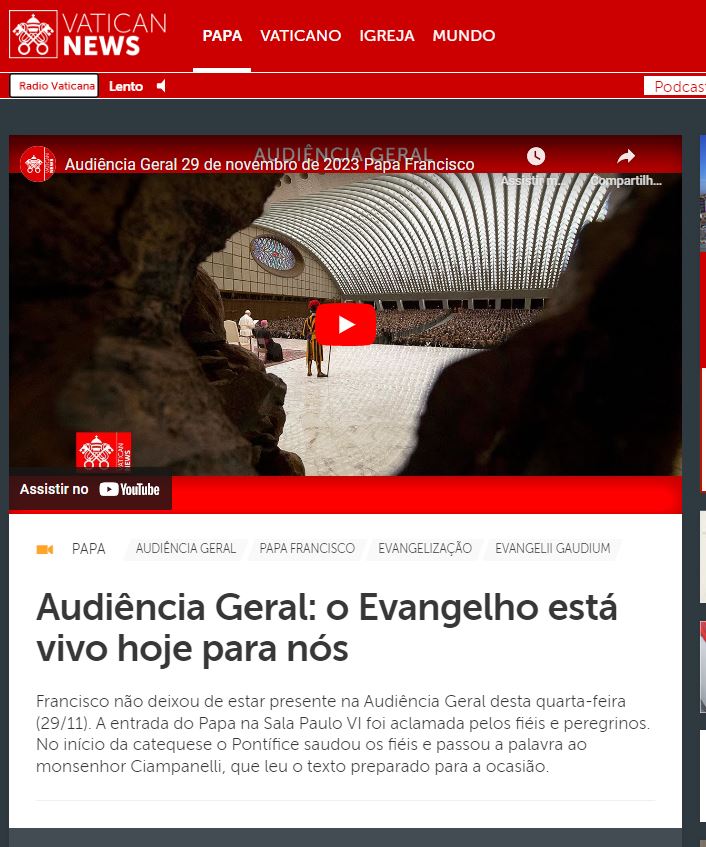 Ouça com a voz do Papa e compartilhe: https://www.vaticannews.va/pt/papa/news/2023-11/papa-francisco-audiencia-geral-29-novembro-2023.html