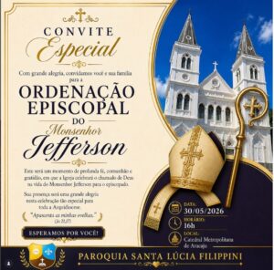 Com grande alegria, a Paróquia Santa Lúcia Filippini convida toda a comunidade para a Ordenação Episcopal do Monsenhor Jefferson.
