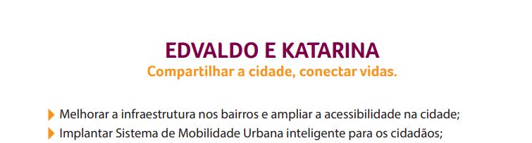 Na campanha à reeleição, ao lado da candidata a vice, hoje deputada federal delegada Katarina, Edvaldo prometeu – entre outras coisas – melhorar a infraestrutura nos bairros e ampliar a acessibilidade na cidade e implantar o Sistema de Mobilidade Urbana inteligente para os cidadãos.