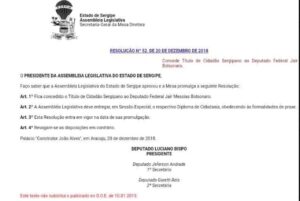 Só em Sergipe del Rey: Bolsonaro terá dupla cidadania. É uma piada tanto puxasaquismo Fascista. Estão aprovando na assembleia hoje (ontem) um título que Bolsonaro já tem aprovado em 2018.