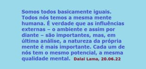 www.twitter.com/DalaiLama We are all basically the same. We all have the same human mind. It is true that external influences—one’s surroundings and so forth—are important, but ultimately the nature of mind itself is more important. Each and every one of us has the same potential, the same mental quality.