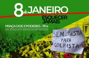 Temos ódio e nojo à ditadura, como disse Ulysses. E, para não esquecer do 8 de janeiro, haverá um ato em defesa da democracia e do Estado de Direito. Os que tentaram um golpe ainda estão por aí, muitos deles soltos. É preciso que sejam julgados e condenados. Não haverá anistia!