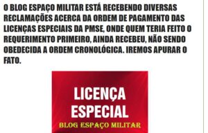 Matéria do Blog Espaço Militar: O blog Espaço Militar tem recebido diversas reclamações acerca da ordem de pagamento das licenças especiais (LEs) da PMSE, visto que policiais militares que fizeram requerimento primeiro, não receberam ainda seus pagamentos, em detrimento de quem fez o requerimento posteriormente, não obedecendo assim a ordem cronológica. Em virtude destas reclamações, o blog pede que quem se sentir prejudicado na ordem cronológica de recebimento das LEs, deverá encaminhar mensagem com documentos e número de telefone para o e-mail do Espaço Militar, qual seja: espacomilitar@hotmail.com, visto que acionaremos o Ministério Público do Estado de Sergipe, para que apure tal fato. Esclarecemos, que o sigilo da fonte será devidamente mantido, conforme é assegurado o artigo 5º, inciso XIV, in fine, da Constituição Federal.
