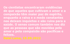 www.twitter.com/DalaiLama Scientists have found evidence that those who cultivate love and compassion have greater peace of mind, while constant anger and fear make us uneasy and are bad for health. Common sense too tells us that people who are moved by love and compassion are peaceful and happy.