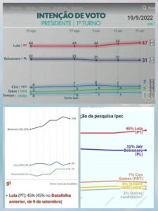 SE OS DADOS DAS ÚLTIMAS PESQUISAS DO “IPEC” E DO “DATAFOLHA”, INSTITUIÇÕES DE NOTÓRIAS CAPACIDADE TÉCNICO-CIENTÍFICA E REPUTAÇÃO ILIBADA, FOREM AUTÊNTICOS (EU ACREDITO QUE O SEJAM), A FATURA TEM TODA A PROBABILIDADE DE SER LIQUIDADA NO DIA 2 DE OUTUBRO, OU SEJA. NO 1° TURNO.