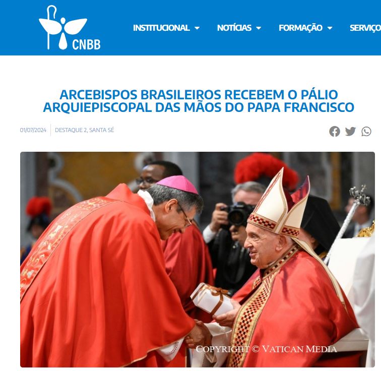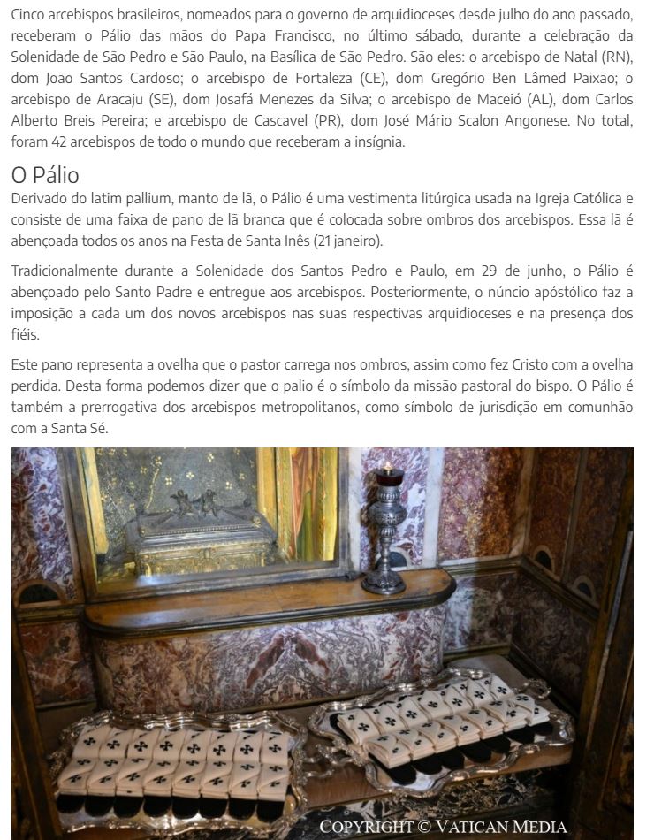 Aqui a Missa de Solenidade de entrega dos Palio aos novos arcebispos: