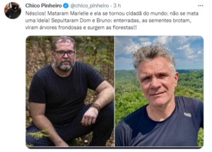 www.twitter.com/chico_pinheiro Néscios! Mataram Marielle e ela se tornou cidadã do mundo: não se mata uma ideia! Sepultaram Dom e Bruno: enterradas, as sementes brotam, viram árvores frondosas e surgem as florestas!!