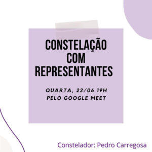 Do jornalista Pedro Carregosa: “Olá boa noite! Nessa quarta feira, 22, estarei realizando uma constelação online com representantes! Aberta! Caso tenha interesse em participar será muito bem vindo( a)!” Segue o link: https://meet.google.com/kyk-wdqc-ysb! Gratidão!