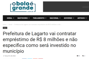 Lagarto: empréstimo de R$ 8 milhões sem detalhamento da utilização Deu no site “O Bolo é Grande” Na sessão da
