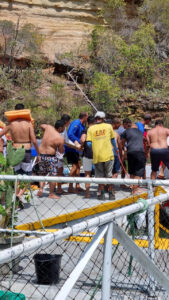 A parte técnica: normas da ABNT são seguidas no local? Quando se opera com roteiros de natureza há Normas Técnicas da ABNT que regem as atividades. Segundo alguns técnicos, tem que ter sistema de gestão de segurança – NBR 18801 e, dentre os cuidados, pessoal capacitado para ações preventivas, para atender ocorrências na hora. Por outro lado, a agência que leva os turistas deve pedir informações de cada cliente se tem algum problema de saúde e necessita de atenção especial. Outra prevenção importante é uma lancha ambulância para agilizar o atendimento. Ontem, o turista foi levado em uma tábua (prancha) improvisada porque não tinha nem mesmo uma maca no local.