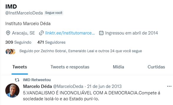 “Vandalismo é inconciliável com a democracia. Compete à sociedade isolá-lo e ao Estado puni-lo.” Eterno professor Marcelo Déda, 21.06.2013.