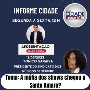 Rádio educativa em Santo Amaro: Cidade FM, 105.9. Além de Santo Amaro, chega a mais 10 municípios da região do Vale do Cotinguiba e Grande Aracaju, por sua posição geográfica. Programa aí bombando de audiência. Uma rádio independente e a serviço do povo e da verdade. Pertencente a Associação Sergipana de Comunicação e Cultura. A rádio está no ar a pouco mais de 1 ano com audiência em toda região Ela também pode ser ouvida pela internet: Rádio Cidade FM – Santo Amaro das Brotas – Grande Aracaju (SE) – radiocidade105.com.br ou pelo próprio aplicativo. Também foi eleita recentemente em pesquisa pública realizada pela Empresa A.M.O Pesquisa, Publicidade e Revista, a rádio destaque de 2022 em Santo Amaro e região.