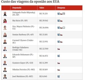 Rodrigo Valadares: vergonha nacional para Sergipe. Viagens da oposição aos EUA já custaram mais de R$ 200 mil à Câmara Deu no site Metropoles: Os Estados Unidos (EUA) se tornaram um dos destinos preferenciais dos parlamentares de oposição, em meio à campanha e ao retorno de Donald Trump à presidência. Levantamento do Metrópoles indica que as viagens ao país, pagas com dinheiro público, custaram mais de R$ 205 mil entre 2024 e 2025. Os gastos realizados pelos deputados federais entre 2024 e 2025 incluem despesas com passagens aéreas, hospedagem, participação em eventos e alimentação. Ao todo, dez parlamentares de oposição registraram esse tipo de despesa nos EUA, o que inclui representantes do Partido Liberal (PL) e do União Brasil. Aqui toda matéria.