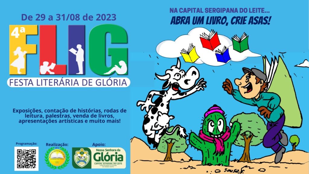 O alto sertão sergipano, mais precisamente Nossa Senhora da Glória, será palco da IV Festa Literária de Glória (FLIG) que acontecerá de 29 a 31 de agosto de 2023. O evento é organizado pela Academia Gloriense de Lteras (AGL), com o apoio da Prefeitura Municipal. O objetivo é propiciar a visitantes e escritores a possibilidade de desfrutarem dos inúmeros benefícios advindos da leitura, num ambiente cultural diversificado, que possa integrar à leitura diversas formas de arte como a música, a dança, as artes plásticas, o teatro, a contação de história entre outras.