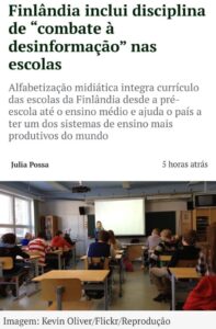 Finlândia incluiu a disciplina de “alfabetização midiática” no currículo escolar desde as séries primárias: