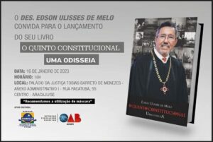 Desembargador Edson Ulisses lança hoje, 16, novo livro “O Quinto Constitucional – Uma odisseia” é o título do livro de autoria do desembargador Edson Ulisses de Melo, presidente do Poder Judiciário de Sergipe, que será lançado hoje, 16, às 18 horas, no Palácio da Justiça Tobias Barreto de Menezes, na Praça Fausto Cardoso, Centro de Aracaju.