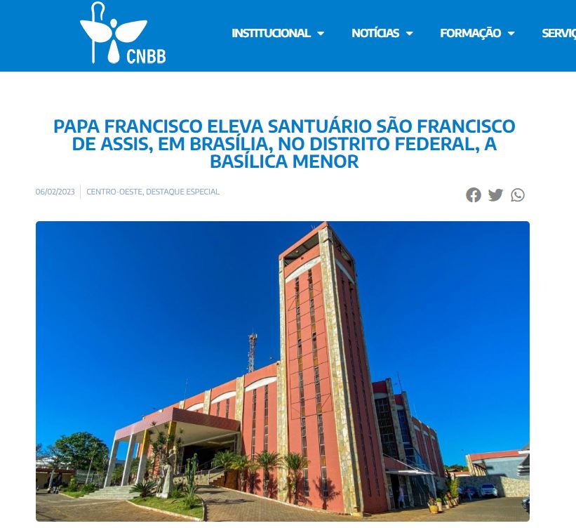 A Basílica Menor São Francisco, localizada em Brasília (DF), é a primeira Igreja honrada com este título no Distrito Federal e no entorno. O anúncio do parecer favorável, pelo Vaticano, foi feito pelo cardeal Paulo Cezar, arcebispo de Brasília, na sexta-feira, dia 3 de fevereiro. Atualmente, a basílica atende cerca de 4 milhões de pessoas. No Brasil, existem cerca de 80 basílicas menores criadas.