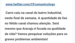 As redes não funcionam sem os limpa fossas? De um leitor: “A propósito desse twite que vc publicou hoje e que é muito oportuno: como a Deso explica a quantidade de caminhões limpa fossa, com seu logotipo, limpando as “redes de esgotos” em vários bairros? Cito 3 que vi somente ontem (06/02) na 13 de Julho (próximo à Pandoro), no Jardins (em frente à Sementeira) e no Loteamento Aruana (rua dr Silvio Cabral Santana). As redes não funcionam sem os limpa fossas?”