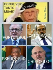 Ricardo Vélez, o ex-mulistro que fala portunhol; Abraham Weintraub, o ex-mulistro delinquente verbal; Carlos Decotelli, o ex-mulistro pseudoPhD (ctrl c + ctrl v); e Milton Ribeiro, o ex-mulistro pastor crisófilo (amante do ouro), além de preconceituoso, racista e supremacista.