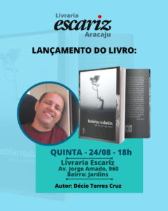 Lançamento livro “Histórias Roubadas” Amanhã, 24, a partir das 18h, na Livraria Escariz da Avenida Jorge Amado, no Bairro Jardins, em Aracaju será lançado o livro de contos Histórias