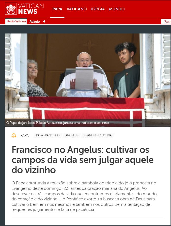 Ouça a reportagem com a voz do Papa e compartilhe: https://www.vaticannews.va/pt/papa/news/2023-07/papa-francisco-angelus-23-julho-2023.html