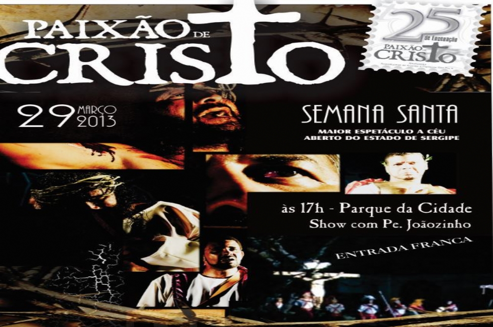 encenação da Paixão de Cristo, que acontece todos os anos na sexta-feira santa no Parque da Cidade. Ou seja, na próxima sexta-feira, 29. A encenação da vida, paixão, morte e ressurreição de Jesus Cristo terá inicio às 17h com o show do católico do Pe. Joãozinho SCJ, e a encenação da Paixão de Cristo será às 19h, são esperadas cerca de 25.000 pessoas este ano.