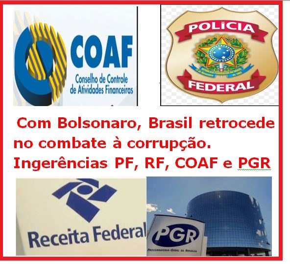 As ingerências de Bolsonaro na PF, na RF, no COAF e na PGR foram divulgadas pela imprensa nos últimos dias. Bolsonaro tenta destruir uma estrutura de fiscalização e de ação do estado brasileiro construída nas últimas duas décadas por pessoas sérias que pensaram o Brasil como algo maior do que o governo que se encontra no poder transitoriamente. Bolsonaro, mesmo como presidente, não tem poderes para acabar com investigações ou fiscalizações. O Brasil ainda é um Estado democrático de direito. Estão querendo tolher os trabalhos de órgãos vitais para o combate à corrupção no país.