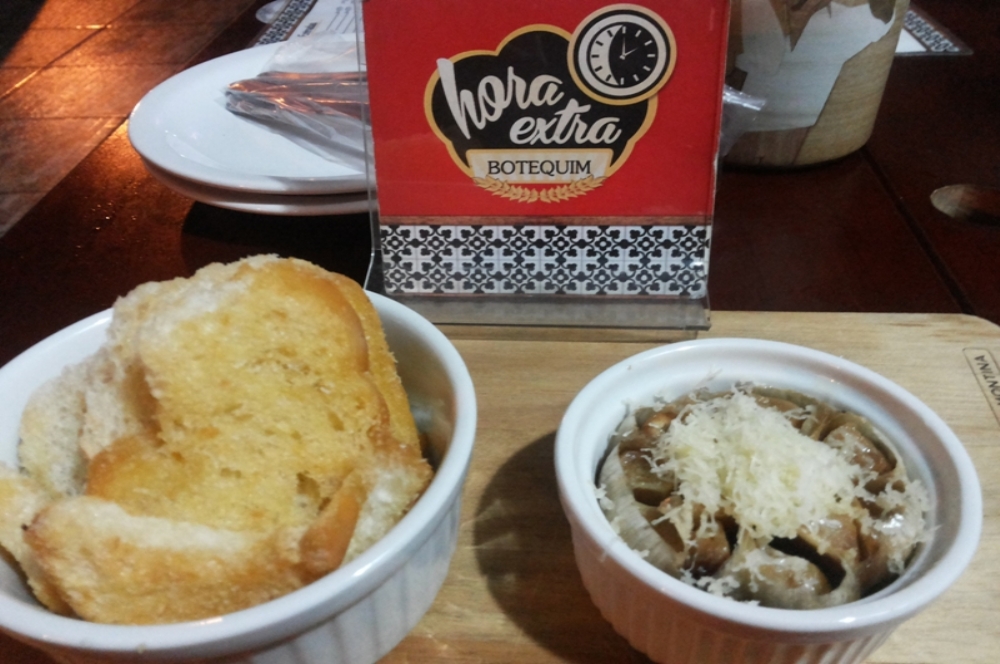 | Cabeça de frade servido em um dos botequins de Macéio (AL). Alho com ervas finas e queijo ralado. |