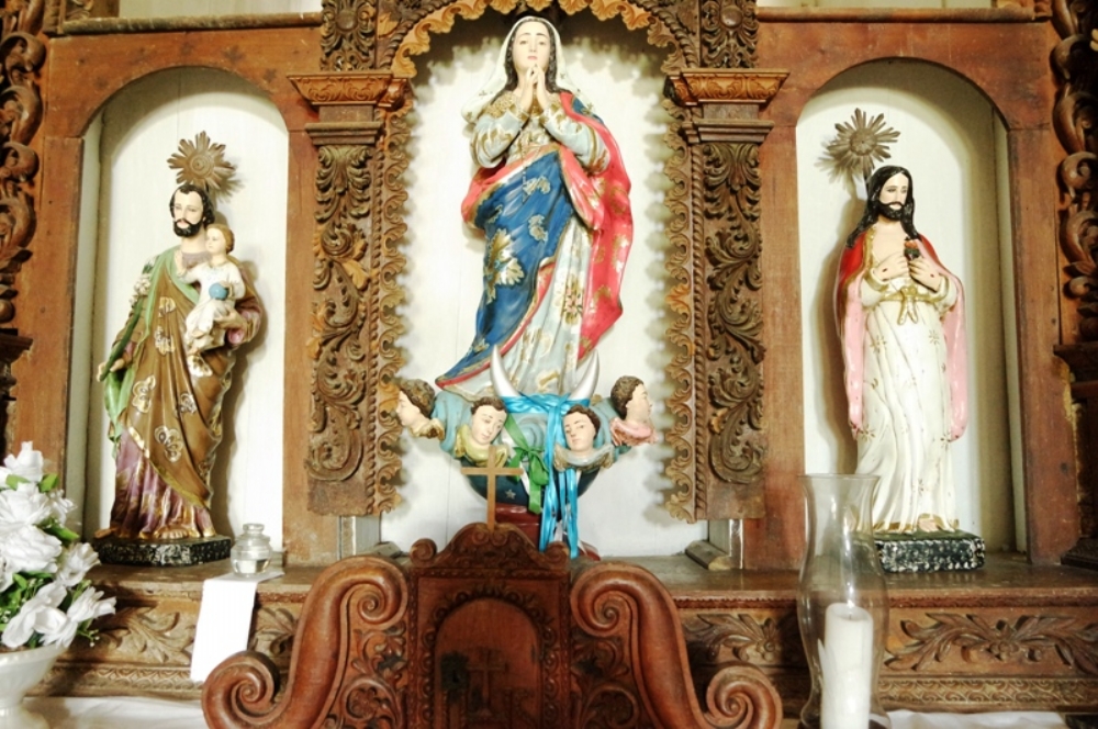 | Imagens harmonizam com o altar de madeira. Foto: Sílvio Oliveira |