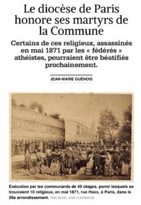 A notícia acrescenta que alguns desse mártires eram religiosos, foram assassinados em maio de 1871 pelos “federados” ateus, e poderão brevemente ser beatificados pela Santa Igreja.