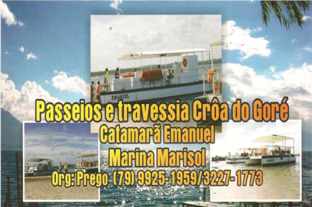 – que fica em São Cristovão – surge diariamente com o movimento da maré no rio Vaza-Barris é uma atração turistica linda. O local tem quiosques de palha, bar flutuante e um excelente banho. De lá você desfruta da beleza dos manguezais, pode passear pela região e passar por baixo da ponte Joel Silveira. Os turistas se encantam e os sergipanos precisam conhecer. Uma boa alternativa para quem nao quer ser explorado financeiramente (é com toda segurança) é pegar o Catamarã Emanuel (lá também tem lancha) na Marina Marisol (chegando a Orla Por do Sol segue a esquerda em direção a escola municipal José Carlos Teixeira. Apenas 100 metros). A marina é administrada por uma família, que tem à frente o conhecido Prego, marinheiro que conhece como ninguém toda a região. Para marcar é só ligar: (79) 9925-1959/3227-1773.