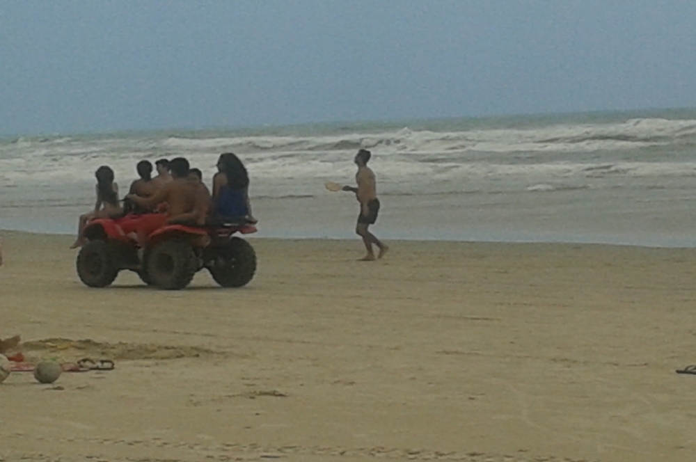 Além da falta de educação, o respeito à vida e as leis vigentes transmitidas por essas pessoas à próxima geração, podemos comprovar a falta de fiscalização em toda extensão da praia tornando-a um local inseguro, e desagradável para qualquer frequentador. Como as denuncias são frequentes e não vejo ser tomada nenhuma providência, sugiro que sejam colocas placas proibitivas de banhistas e frequentadores da areia dessas praias, regulamentando-as definitivamente à prática de “brincadeiras”, e atividades esportivas com o uso de veículos.