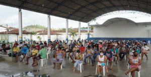 de cadeiras com espaço de dois metros entre uma e outra onde as pessoas aguardavam os atendimentos na área interna do clube social. Os funcionários da Caixa Econômica chamavam as senhas por vez para os atendimentos na área interna do banco. Na oportunidade, a Secretaria Municipal de Saúde realizou palestras, distribuição de máscaras e álcool 70% para a população presente, uma forma de conscientização quanto aos cuidados e prevenção ao Coronavírus.