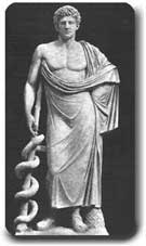 Asclépio, deus da Medicina na mitologia grega, era filho de Apolo e Coronis. Criado pelo mestre centauro Quirón, ele associava a arte de tocador de harpa à perícia de um cirurgião. Unia medicina e arte. Com Quirón, Asclépio aprendeu medicina a partir do uso de plantas para a cura das enfermidades, tornando-se famoso em toda a Grécia.