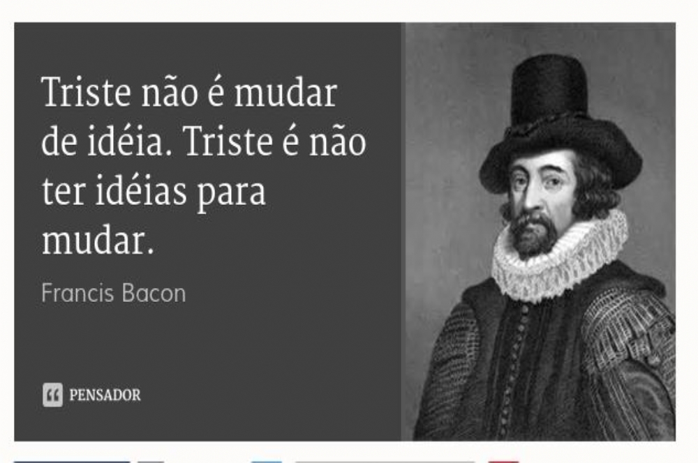 “Triste não é mudar de ideia. Triste é não ter ideias para mudar.” Francis Bacon. Diante da atual crise e de um estado brasileiro cada vez mais