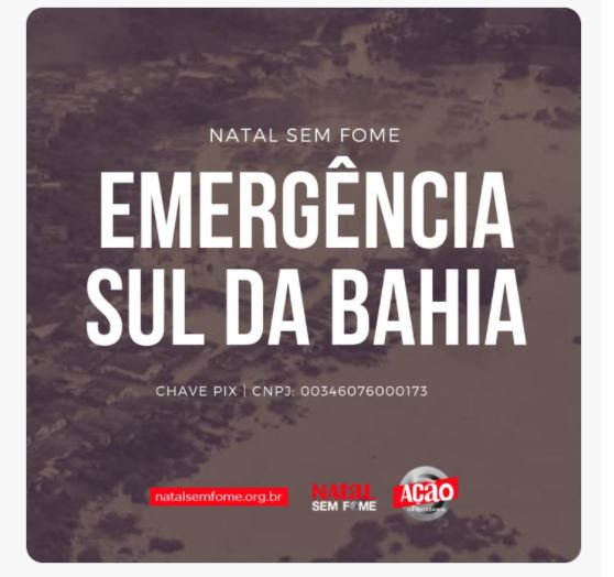 www.twitter.com/andretrig 30 cidades do sul da Bahia devastadas por um ciclone tropical precisam de ajuda! A campanha Natal sem Fome prepara o envio de toneladas de alimentos p/a região.